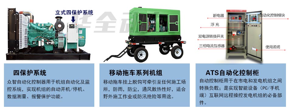 移動拖車掛上脫鉤可牽引至任何施工場所,防雨,防塵,通風散熱性好,適合野外施工作業(yè)或防汛搶險等用途。
